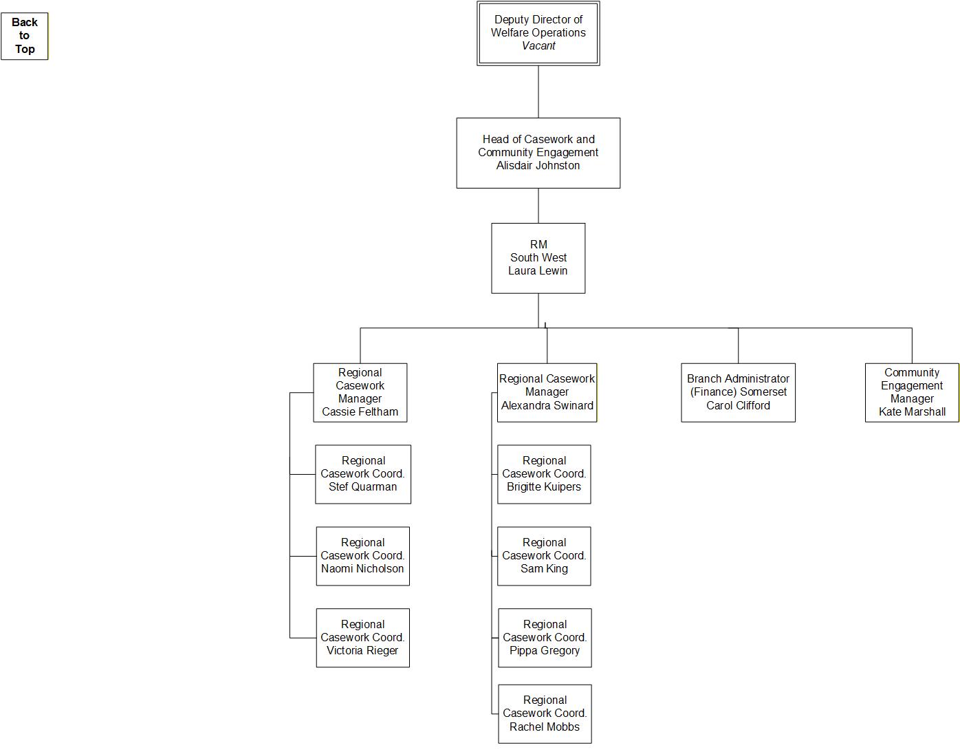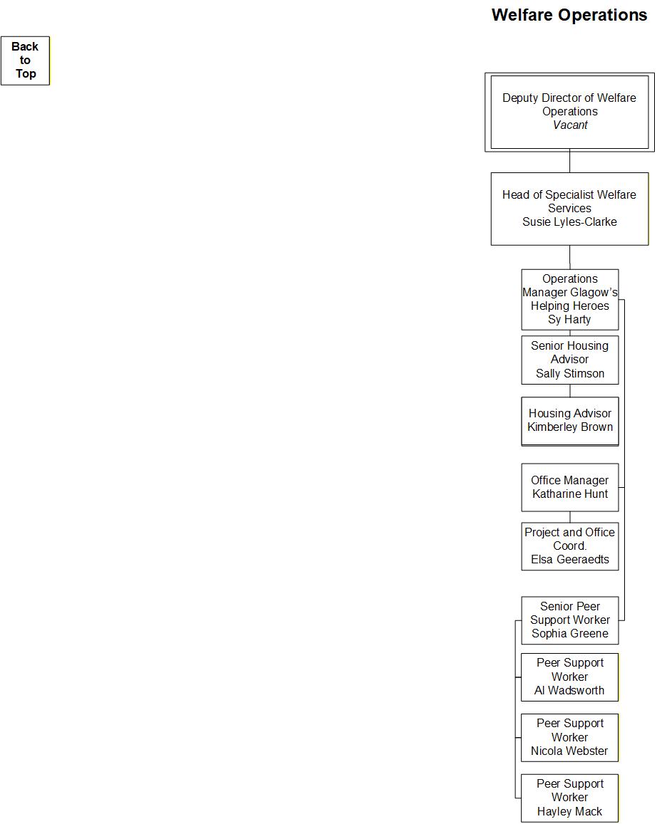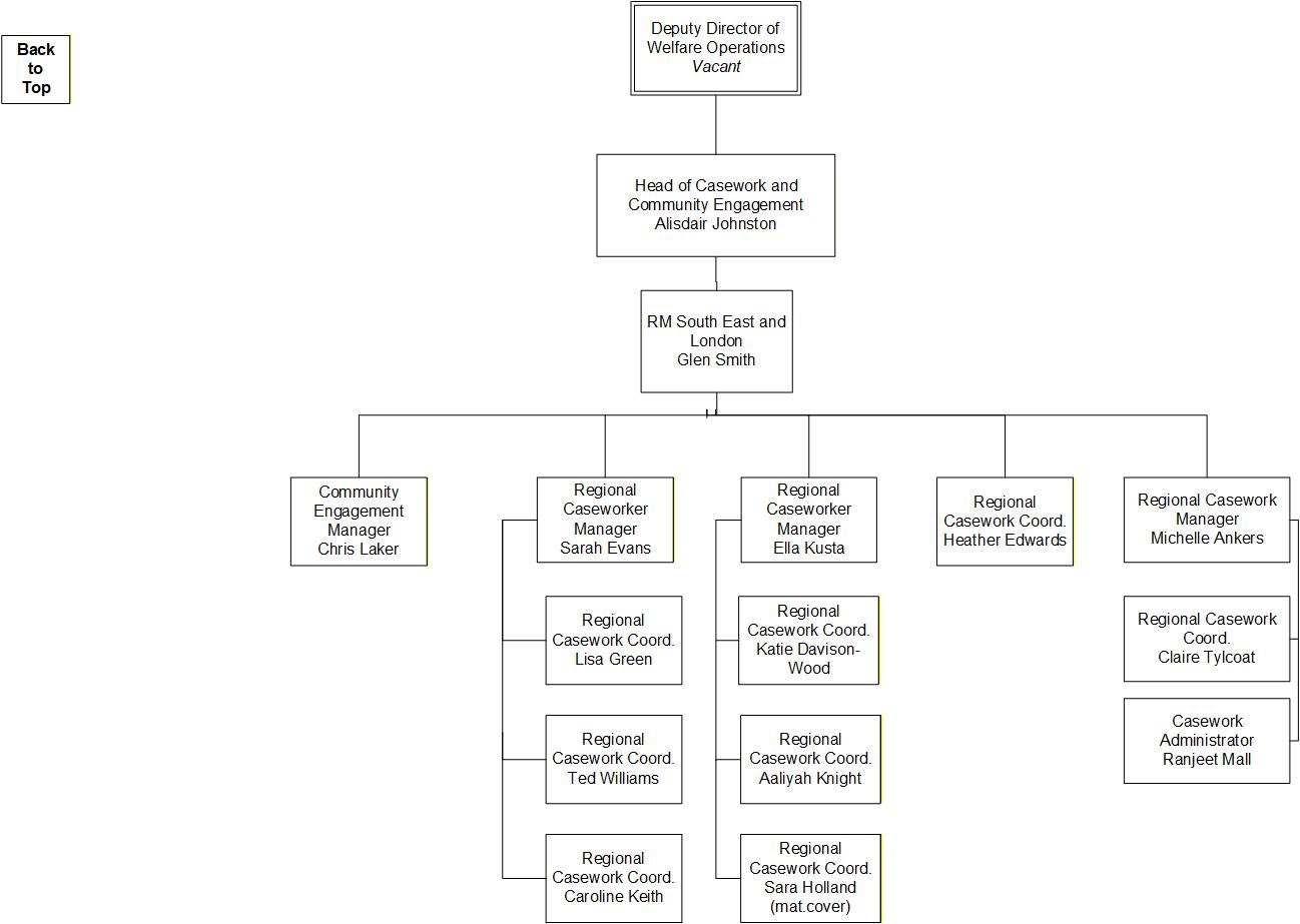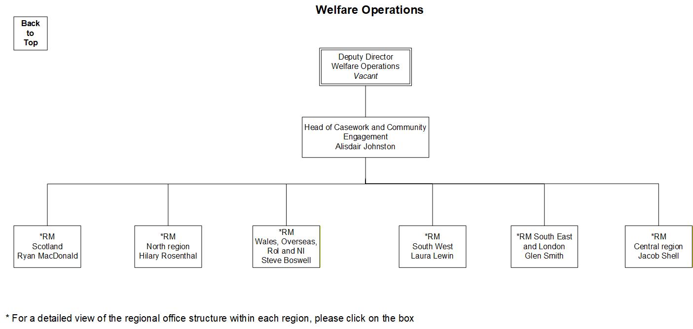 Here are some organigrams helping to visually explain the structure of SSAFA's Welfare Operations. This is to help in your understanding as a volunteer of who to interact with / where everyone sits within the organisation.