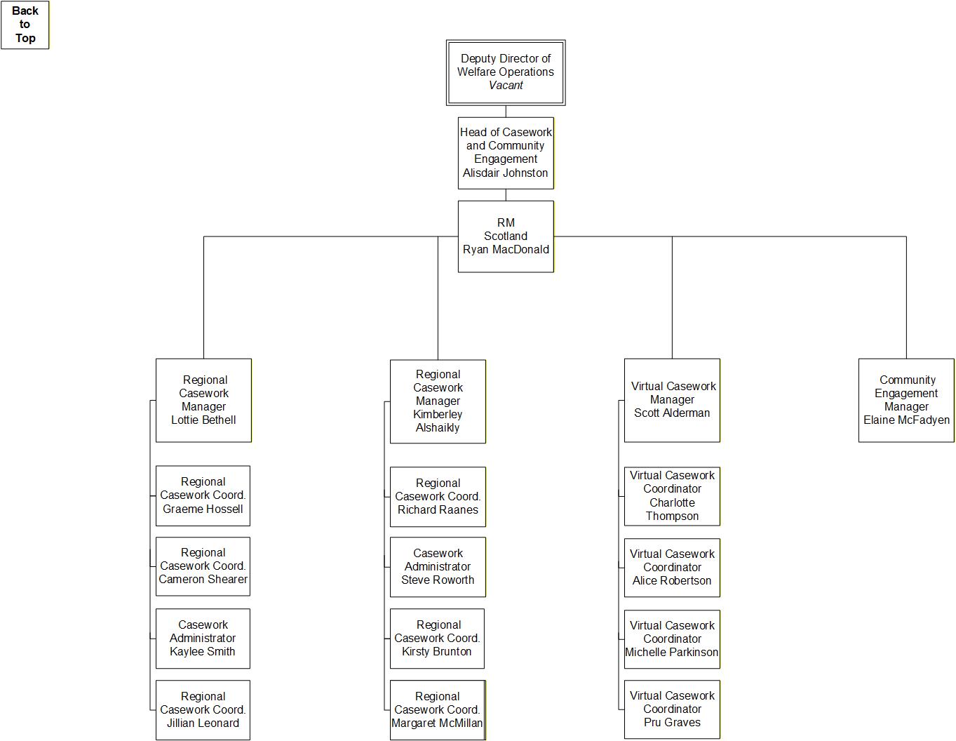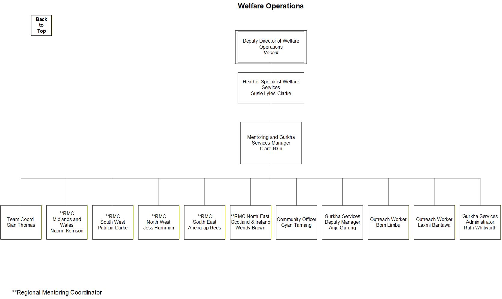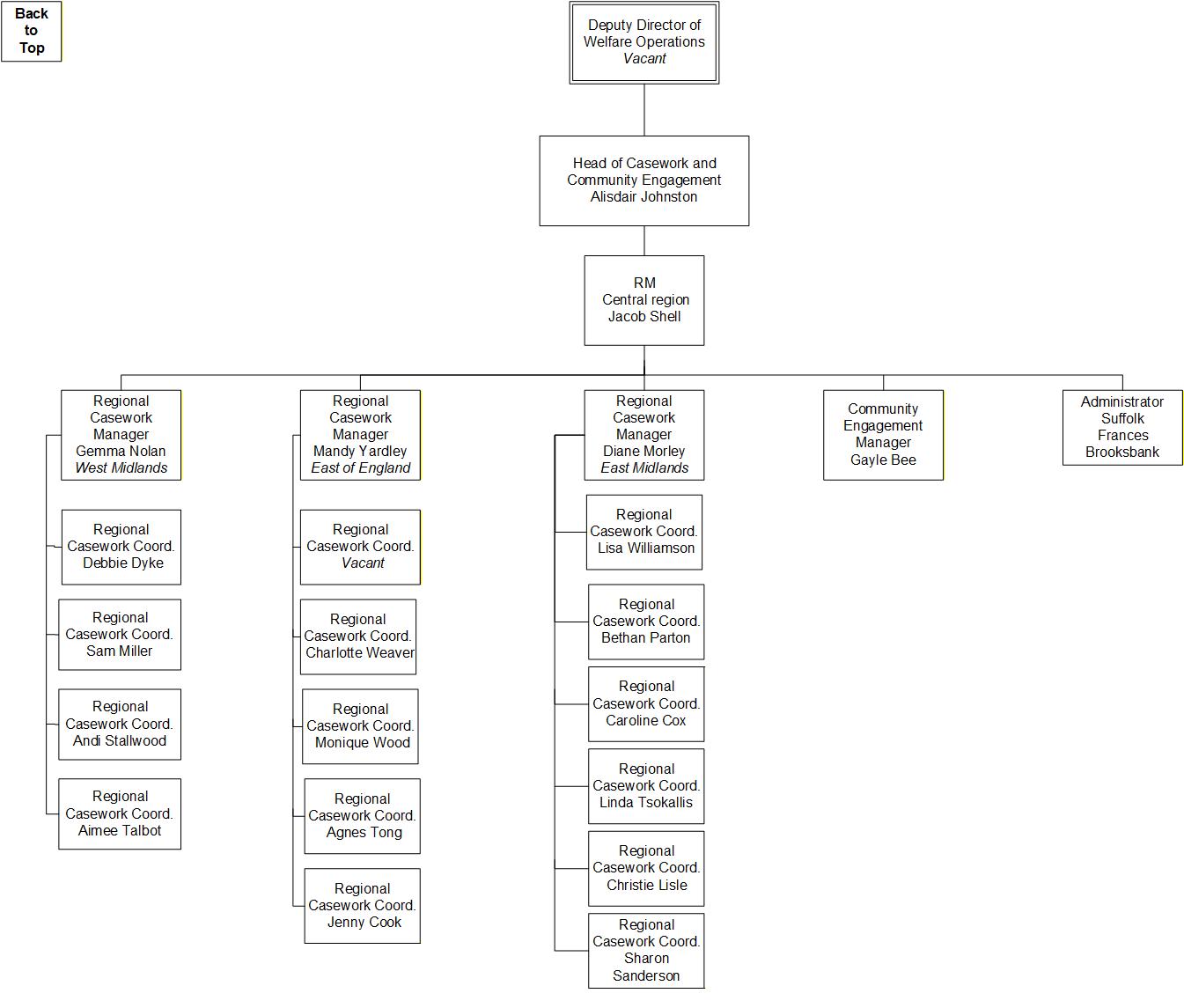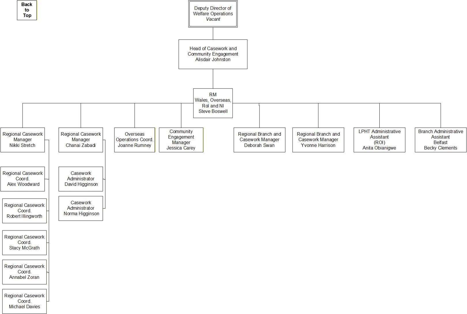 Here are some organigrams helping to visually explain the structure of SSAFA's Welfare Operations. This is to help in your understanding as a volunteer of who to interact with / where everyone sits within the organisation.